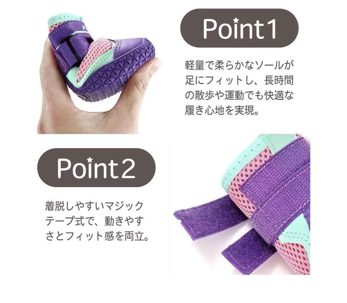 通気性に優れたメッシュ素材を使用した、夏に最適なドッグシューズです。軽量で柔らかなソールが足にフィットし、長時間の散歩や運動でも快適な履き心地を実現。