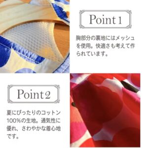 暑い夏でもさわやかなコットン100%の生地を使用。扱いやすくお手入れも楽々。胸元の裏地にはメッシュ素材を使用し、ワンちゃんの快適さも配慮しています。