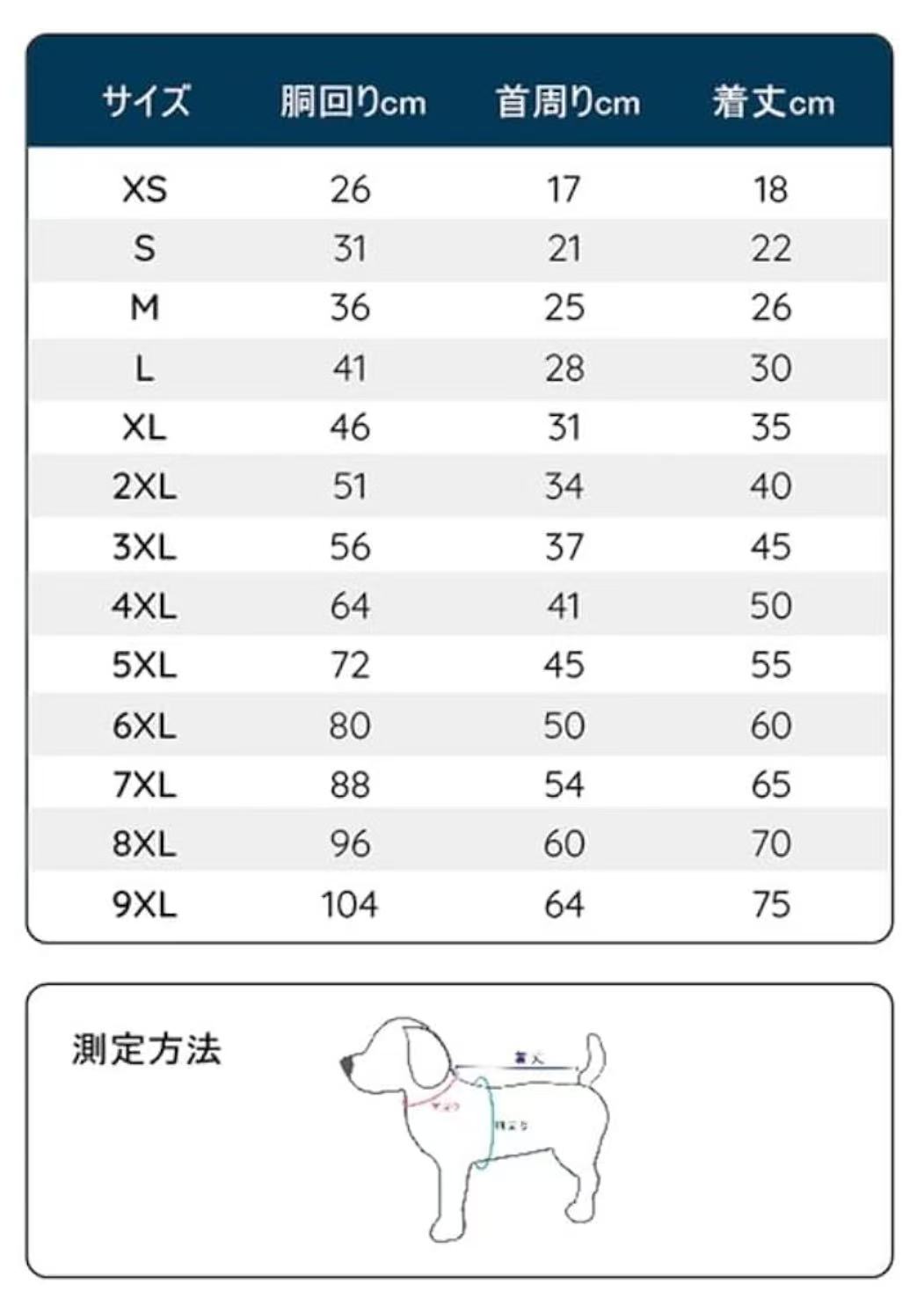 Mサイズ:胴回り36cm /首周り25cm /着丈22cm